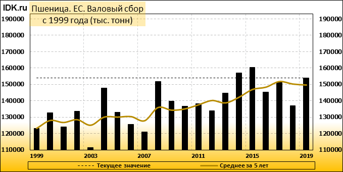 Валовый сбор: оценка не изменилась и составляет 154000 тысяч тонн.