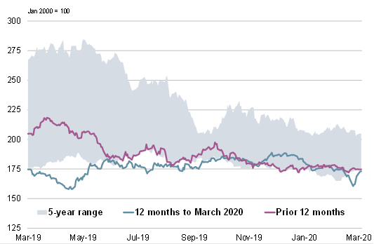 В прошлом месяце усилились опасения по поводу глобального распространения коронавируса и растущей неопределенности относительно долгосрочных последствий для производства и потребления. В то время как для некоторых товаров наблюдался резкий рост краткосрочного спроса, особенно для риса и пшеницы, ухудшение экономических условий может привести к снижению потребления в долгосрочной перспективе, особенно для промышленных товаров, таких как этанол на основе кукурузы и крахмал.