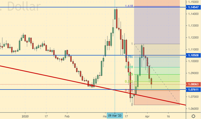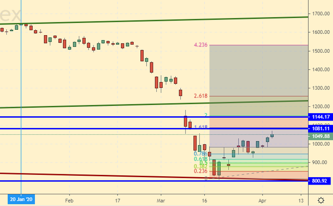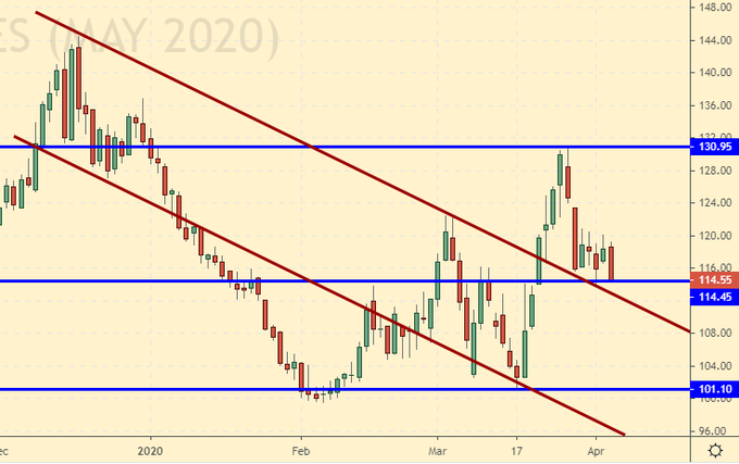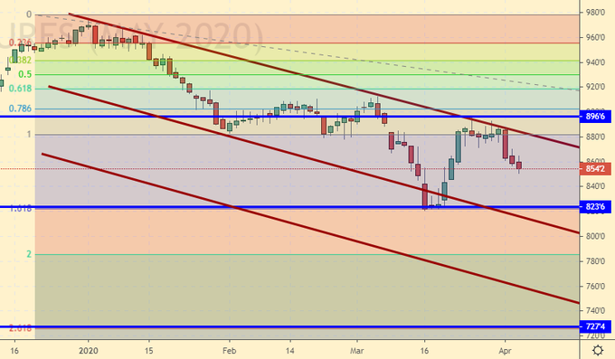 Сценарий роста: выше 1080 рынок не виден, так как нам нужно восстановление цен на нефть, а его не будет, так как спрос на топливо продолжит падать в апреле, это уже ясно всем. Если как-то мы поднимемся сейчас к 1250, что будет явным перебором, то май будет просто адским: пойдем на 600.0.