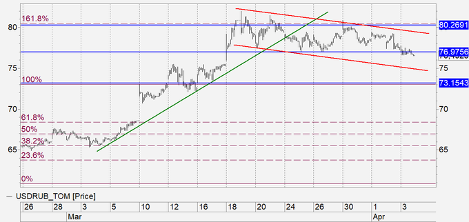 Рубль: первые три дня на этой неделе будем отыгрывать сценарий «всё будет хорошо». Вот соберется ОПЕК, 9-го апреля сделает нефть дорогой, россияне будут счастливы. Проблема в том, что сокращать добычу надо на 20 миллионов баррелей для исправления ситуации, но и на 10 сокращать никто не будет. От 74.00 покупаем доллар.