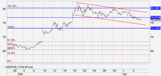 Наиболее вероятно: откат в район 75.00 и рост.