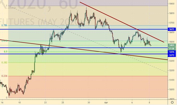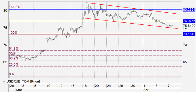 Рубль: если сделка ОПЕК умрет так и не родившись, то рубль так и останется выше 75.00. Минфин РФ честно признался, что если нефть будет на 10 долларов, а карантин продлится до осени, то курс рубля будет 89.00. Если нефть будет 20 долларов, курс будет 82.00. Эта модель позволяет нам понять, чего ожидать в будущем. «Доброжелатели» могли бы еще сильнее поддавить Россию, да вот беда, все ресурсы будут брошены на обеспечение собственных безработных. Покупка доллара с текущих уровней выглядит несколько преждевременной, но на часовках можно поискать точки входа.