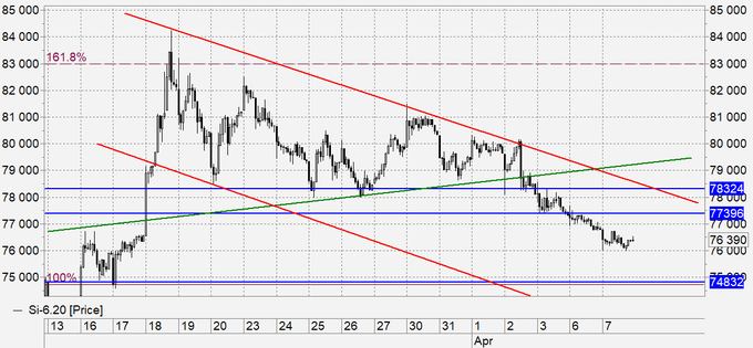 Продажа: нет. Кто в позиции, перенесите стоп на 77600. Цель: 75000. Можно зафиксировать 30% прибыли.