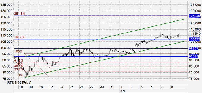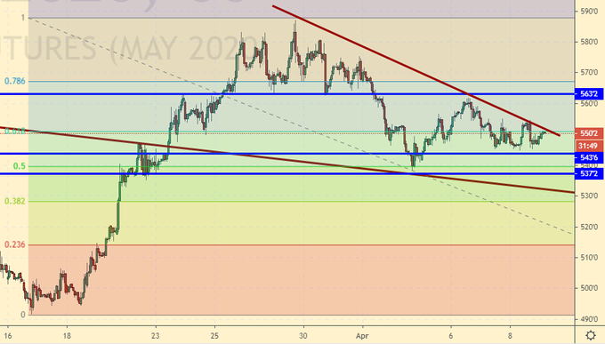 Индекс РТС: разумным компромиссом в период карантина можно назвать решение правительства РФ не останавливать все предприятия в стране. На региональном уровне также часть производств продолжает работать. Несомненно, это не даст ситуации сползать в пропасть. Фундаментальных драйверов для роста фондового рынка сейчас нет. Для индекса РТС есть надежда на рост курса рубля. Выше 125000 рынок в текущих обстоятельствах не виден.