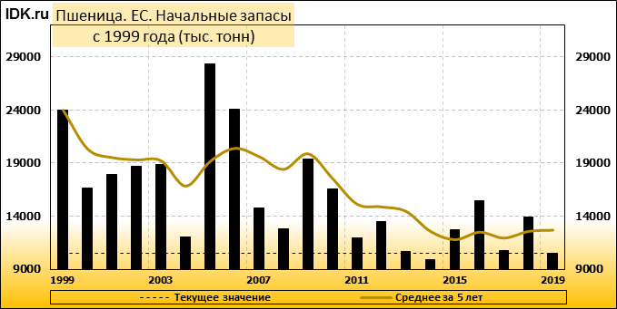 За прошедший месяц министерство сельского хозяйства США (USDA) на 09.04.2020 пересмотрело Баланс пшеницы для ЕС в сезоне 19/20 следующим образом: