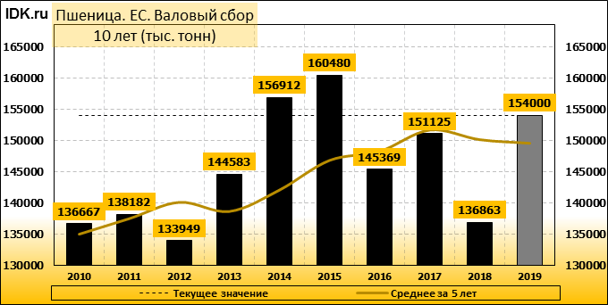 Валовый сбор: оценка не изменилась и составляет 154000 тысяч тонн.