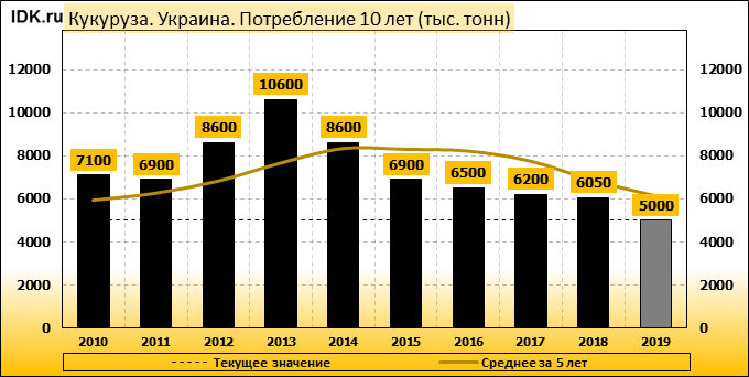 Потребление: показатель не изменился и составляет 5000 тысяч тонн.