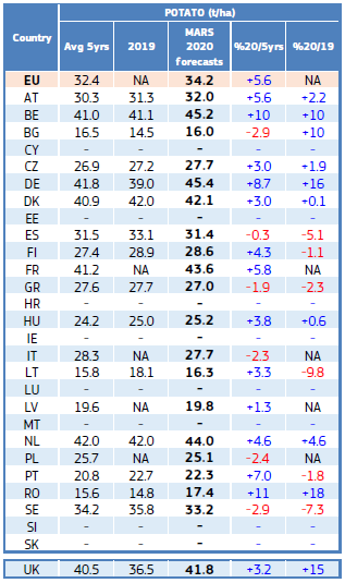 Прогноз урожайности картофеля (т/га) на 2020 г.