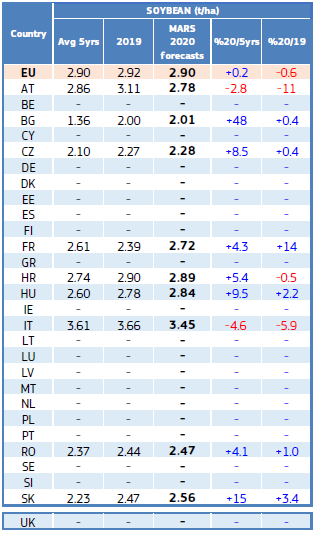 В большинстве основных регионов производства сои температура почвы уже достигла более 10⁰C, и посев начался с середины апреля, что соответствует обычному периоду сева. Погода в настоящее время позволяет фермерам продолжать готовить почву к посеву в большинстве регионов, и они должны завершить посевную кампанию до середины мая. В настоящее время существует проблема в северной Италии, в частности в Венето, где влажность почвы низкая и необходимы дожди для обеспечения достаточного количества воды для орошения, а также в Румынии и Болгарии, где требуются дожди для прорастания неорошаемых соевых бобов. В других странах со значительным производством сои — Австрии, Словакии, Венгрии и Хорватии — уровень влажности почвы в настоящее время является достаточным. Во Франции условия благоприятны в юго-западных регионах благодаря недавним осадкам, в то время как на востоке — Бургундия-Франш-Конте и Рона-Альпы — дефицит дождей может помешать началу сезона.