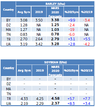 Избыток осадков наблюдается даже в юго-восточной части Турции, что имеет благоприятные последствия; и в некоторых районах Магриба, но слишком поздно, чтобы помочь озимым культурам, пострадавшим от продолжительной засухи.