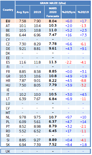Прогноз урожайности кукурузы (т/га) на 2020 г.