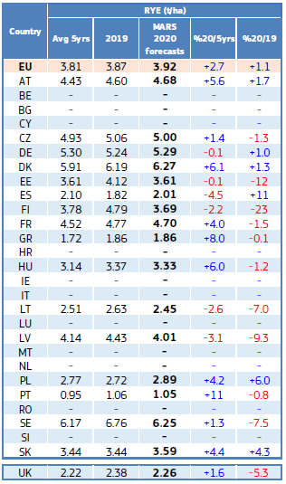 Прогноз урожайности ржи (т/га) на 2020 г.