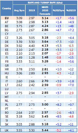 Прогноз урожайности рапса (т/га) на 2020 г.