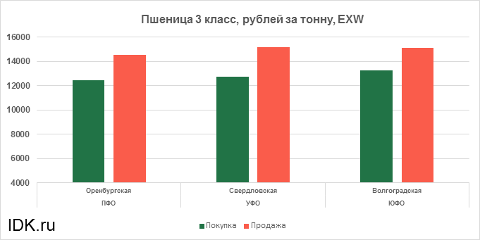 За прошедшую неделю с 04.05.2020 по 08.05.2020 средняя цена на пшеницу 3-го класса, согласно выставленным заявкам трейдеров, упала по всем округам на 48 рублей. Средняя цена составляет 13867 рублей за тонну.