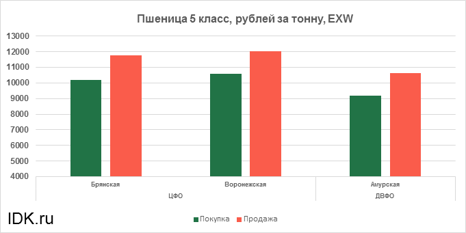 За прошедшую неделю с 04.05.2020 по 08.05.2020 средняя цена на пшеницу 5-го класса, согласно выставленным заявкам трейдеров, выросла по всем округам на 125 рублей. Средняя цена составляет 11145 рублей за тонну.