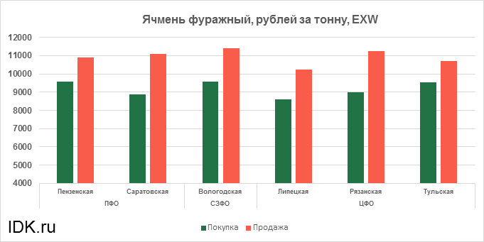 За прошедшую неделю с 04.05.2020 по 08.05.2020 средняя цена на фуражный ячмень, согласно выставленным заявкам трейдеров, выросла по всем округам на 551 рубль. Средняя цена составляет 10046 рублей за тонну.
