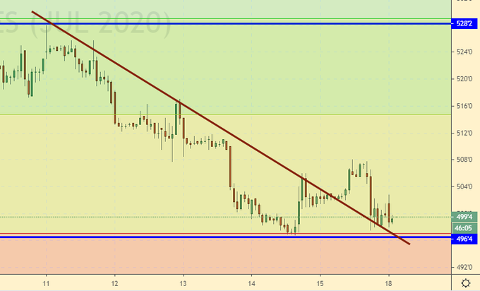 Если сегодня мы опустимся ниже 495.0 центов за бушель рынок может отправиться к 450.0. Если же мы удержимся на текущих уровнях, то рано или поздно, читай, сегодня или завтра, это приведет к ходу в район 520.0.