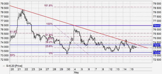 Покупка: в случае роста выше 74500. Стоп: 73400. Цель: 78440.