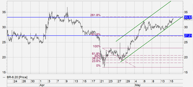 Продажа: при касании 33.30. Стоп: 33.70. Цель: 27.30.