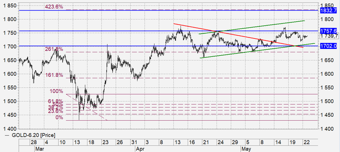 На рынке спокойная ситуация. Покупатели не торопятся форсировать события, что говорит нам о том, что мы близки к насыщению спроса. По текущим ценам мало кто готов пополнять свои золотые запасы. Для более оживленной торговли рынку нужен откат. Ход к 1830 возможен, а вот для дальнейшего роста нужны будут какие-то потрясения. Технический дефолт Аргентины, например, на трейдеров впечатления не произвел. Утром в Азии цены перешли к снижению.