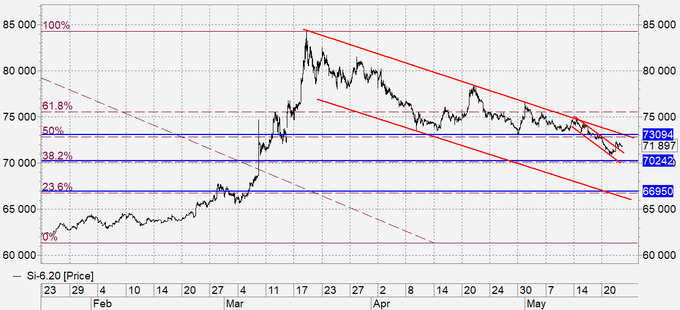 Продажа: думать при подходе к 73.00. Стоп: 74.40. Цель: 69.20.