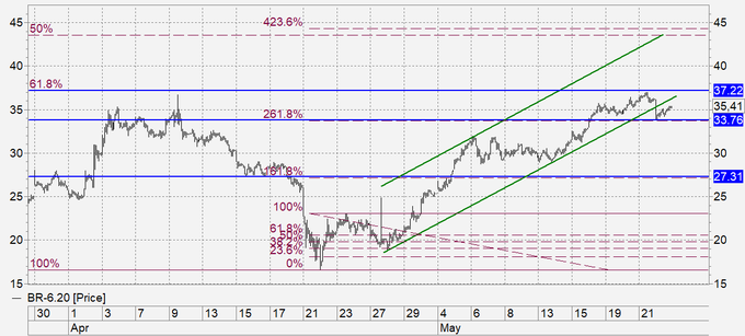 Продажа: нет. Кто в позиции, от 35.00, держите стоп на 36.60. Цель: 27.30.