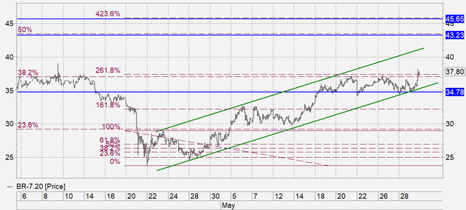 Покупка: при откате к 36.60. Стоп: 35.40. Цель: 43.20 (46.60).