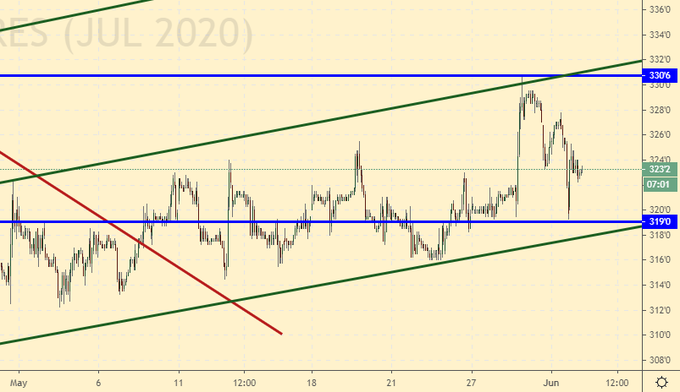 Ждем от рынка хода к 542.0. Для более сильного роста нужна плохая погода, нашествие саранчи на Европу, логистические проблемы или, наоборот, повышенный спрос на белый хлеб на фоне радости по поводу окончания пандемии.