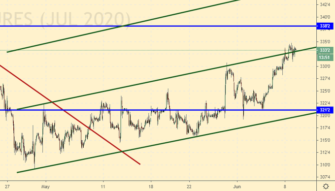 Рынок стоит. Народ ждет выхода отчета USDA 11-го числа. Май закончился. Растения уже сформированы. Теперь помешать зерну набрать вес может лишь засуха. Однако, отсутствие влаги вряд ли будет носить глобальный характер.