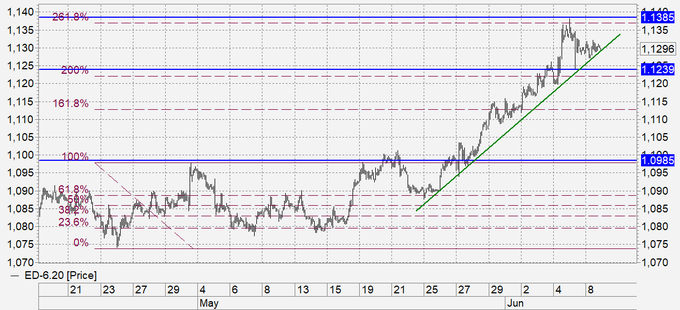 Здесь можно продавать. Скорее всего агрессивная поддержка не выдержит, и мы провалимся, для начала, к 1.1150. Завтра посмотрим насколько оптимистичными будут взгляды ФРС на ситуацию в экономике. Восстановление рынка труда в мае уже стало приятным сюрпризом.