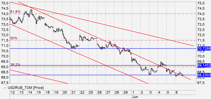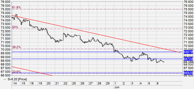 Нам осталось красиво сходить на 66.00, после чего можно будет разворачиваться вверх. То есть, оставляем место в размышлениях для удара вниз и отскока. Разворот вверх с текущих уровней возможен, но он во многом будет зависеть от того насколько агрессивно будут падать вниз цены на нефть.