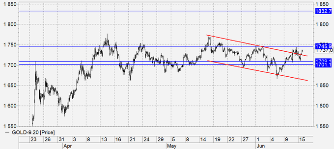 Рынок коснулся 1710. О возможности данной продажи писали вчера, но не указывали её явно, так как ход там был совсем небольшой. Видим, что мы пока ниже 1750, но при этом цены пытаются закрепиться выше падающего пологого канала. Если это получится, то дорога к 1830 будет открыта. Идея всех покупателей золота в том, что долларов печатают триллионы и рано или поздно это должно привести к гиперинфляции в США, но система будет оставаться устойчивой до тех пор, пока число желающих продать что-то на американском рынке будет превышать спрос.