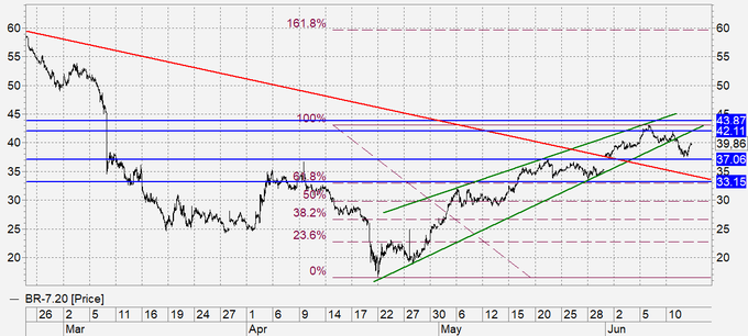 Продажа: сейчас. Стоп: 40.30. Цель: 34.10. Кто вошел от 43.40, перенесите стоп на 40.30. Цель: 34.10.