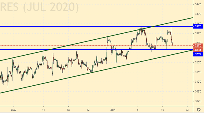 Посматриваем на фондовый рынок США. Там пока постановка индексами новых максимумов под вопросом. Скоро июль. Надо успеть походить на своих яхтах, несмотря на всякие вирусы. После чего, уже в августе можно будет вернуться к терминалам и подумать о том, что делать дальше. Возможно, придется продать яхту и купить золото. Лето вступило в свои права, сильных движений не ждем.