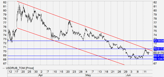 Рубль будет ждать заседания ЦБ РФ в пятницу. Обратим внимание на то, что в периоде ожидания решения по ставке рынок держится, пара продолжает претендовать на продолжение снижения. Если состоится ход ниже 67.00, то он может заложить фундамент на будущее для весьма комфортного курса рубля до конца 2020-го года. Отчасти такой ход будет признанием проблем в США и признанием того факта, что карантин нанес куда меньший вред экономике РФ чем это можно было предполагать.