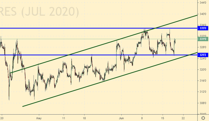 На высоких ожиданиях будущего урожая пшеница продолжает падать. Касание 475.0 уже не вызывает никаких сомнений. Дальнейшее падение также возможно. Но это произойдет, скорее, в начале июля перед выходом очередного отчета USDA в случае если погода продолжит оставаться близкой к идеальной.