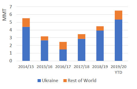 Куда направлялась украинская кукуруза последние несколько месяцев, если не в ЕС? Ответ на этот вопрос — Китай. Украина является крупнейшим поставщиком кукурузы в Китай с 2014/15 года. Возможно, в результате высоких внутренних цен на кукурузу в Китае, импорт украинской кукурузы является самым высоким за последние 6 лет. Однако спрос Китая на американскую кукурузу также высок, и Украина, похоже, столкнется с усилением конкуренции со стороны США в ближайшем будущем. Согласно данным экспортных инспекций США, с 1 сентября поставки кукурузы в Китай составили 1,1 млн. тонн, опередив Мексику с 1,0 млн. тонн в качестве крупнейшего покупателя.