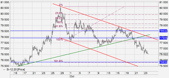 Продажа: нет. Кто в позиции от 78300, перенесите стоп на 77800. Цель: 75900 (74000).