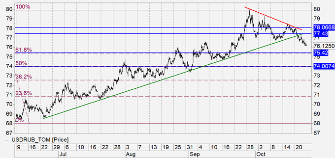 Нет никаких сомнений, что мы достигнем 75.40. Дальнейшее укрепление, к уровню 74.00, также возможно. Доллар теряет позиции из-за неопределенности с итогами выборов в США, в то время как рубль, за счет политики явного невмешательства в конфликты рядом с границами страны, продолжает выигрывать. Отметим хороший спрос на ОФЗ и рост цен на экспортные товары, что стабилизирует национальную валюту.