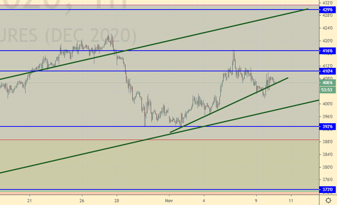 Покупка: нет. Кто в позиции от 396.0, 394.0 и 392.0, перенесите стоп на 401.0. Цель: 430.0.