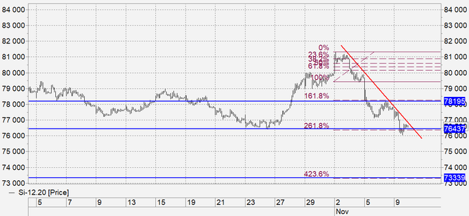 Продажа: при откате к 77.70. Стоп: 78.60. Цель: 73.10. Кто в позиции от 77.90, перенесите стоп на 78.60. Цель: 71.00.