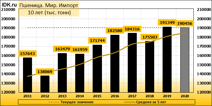 Импорт: составит 190456 тысяч тонн. Значение по прошествии месяца поднялось на 0.46 процента.