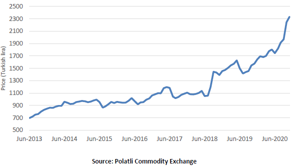 Рисунок 6. Внутренние цены на пшеницу в Турции