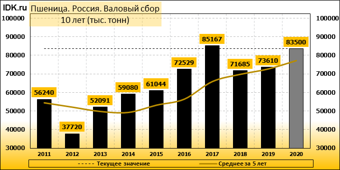Валовый сбор: оценка пересмотрена в сторону повышения до 83500 тысяч тонн. Показатель вырос на 0.6 процента.