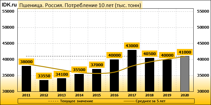 Потребление: показатель не изменился и составляет 41000 тысяч тонн.