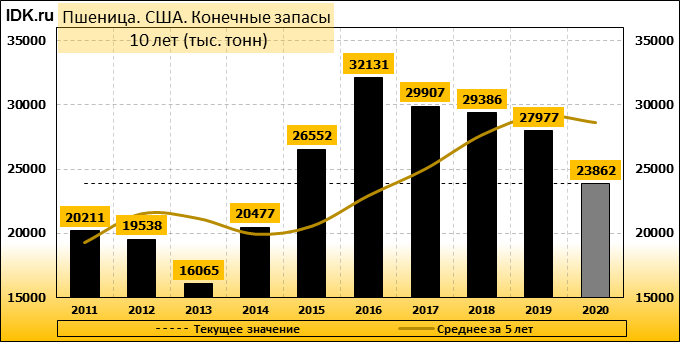 Конечные запасы: составят 23862 тысячи тонн. Оценка с последнего отчета снизилась на -0.68 процента.