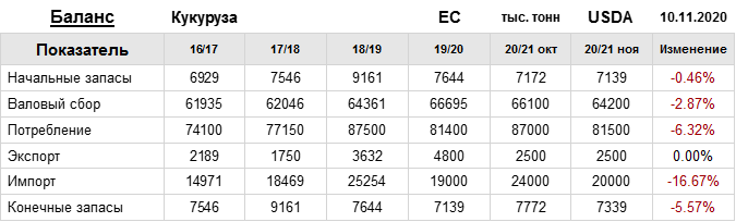 Смотрите также баланс по кукурузе на 13 ноября 2020 по Украине