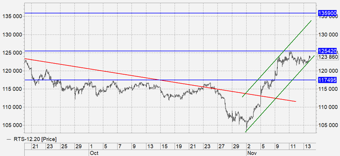 Очень бы нам хотелось увидеть охлаждение до 117000, но такой роскоши может и не быть. Рынок технически готов продолжать восходящее движение. Учитываем, что у нас впереди декабрь, «рождественское ралли», мандарины, шарики и всё такое. Как бы нас не вынесло на 170000, дамы и господа.