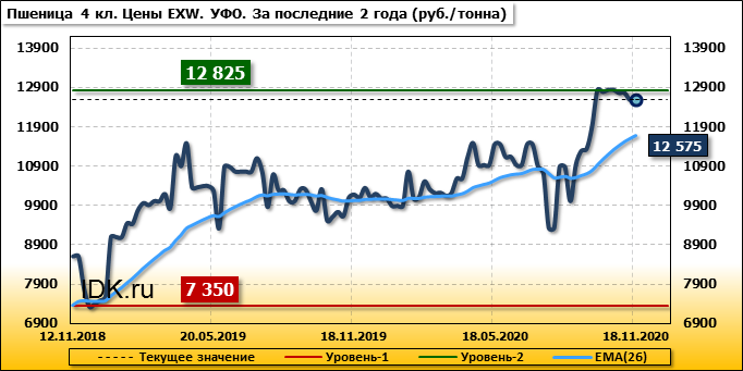 Цены на пшеницу 4-го класса не изменились и составляют 12575 рублей за тонну.