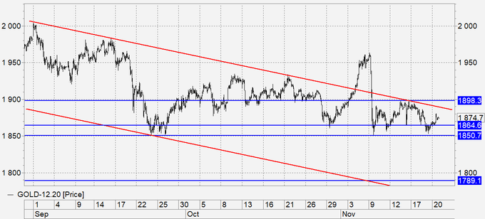 Пока рынки не поймут каким будет экономический курс США на ближайшие четыре года золото вряд ли будет вести себя активно. На фоне появления вакцин напрашивается коррекционный ход, но покупатели находятся и на этих уровнях, так как страхи по либеральной политике вероятного президента Байдена заставляют размышлять о слабом долларе.